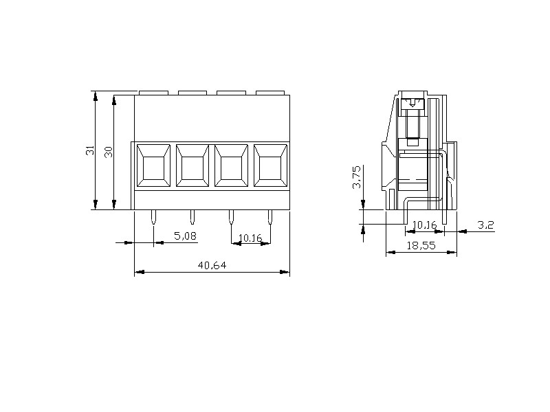 10,16×10,16mm Modüler Baskılı Devre Klemens 4 Pim