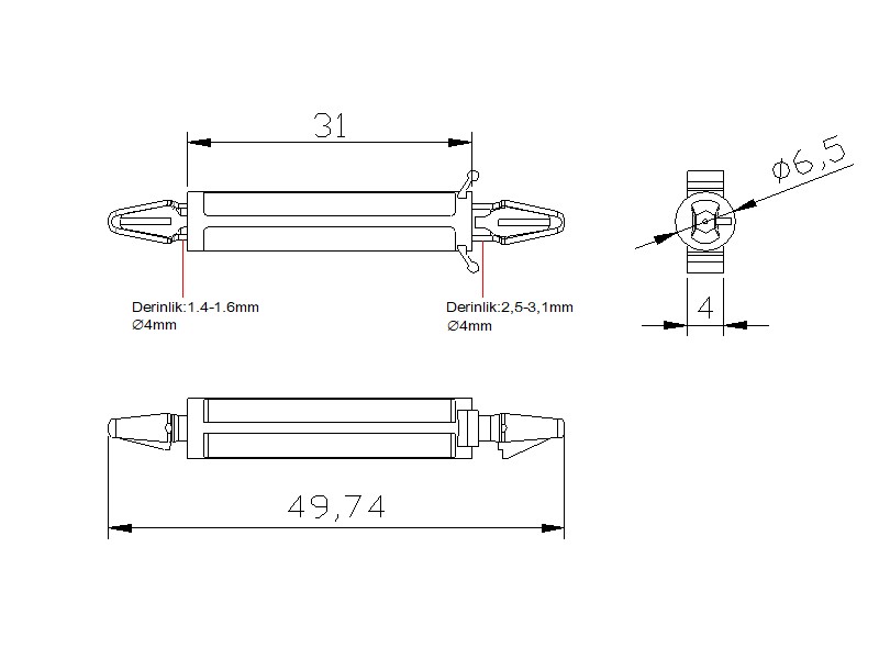 Delik çapı: Ø 4mmUzunluk: 31mmUygulama alanı: PCB-Pleksi
