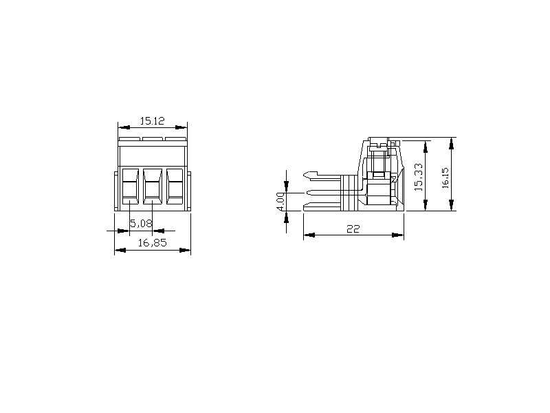 Asansör mekanizmalı vida bağlantılı soketli PCB klemensi3 kutupMax. iletken kesiti: 1,5mm²-16 AWGPim aralığı: 3,81mmNominal gerilim: 250VNominal akım: 8A