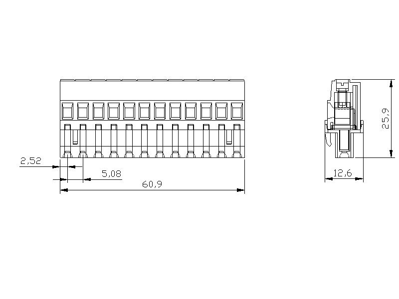 | SBDK 5,08-E1/12 | 5,08mm Soketli Klemens Erkek 90° Kapalı – 12 Pim | | |