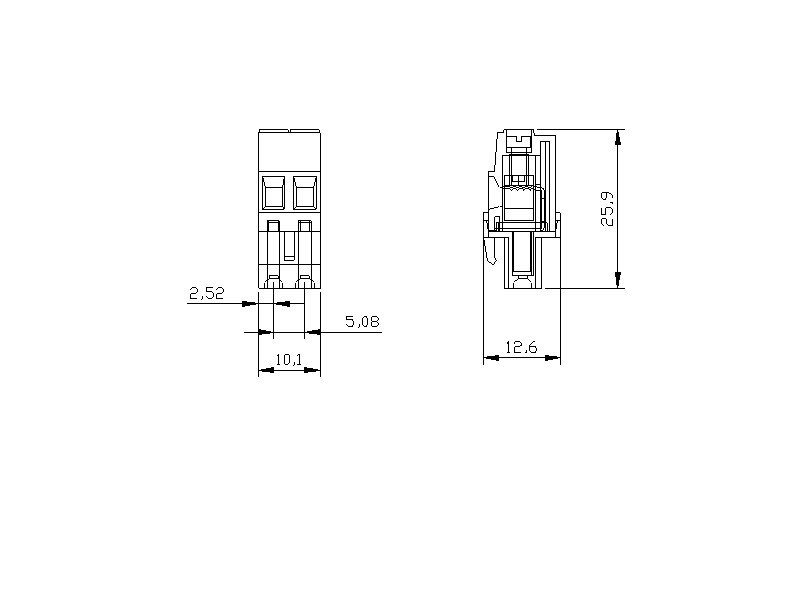 Asansör mekanizmalı vida bağlantılı soketli PCB klemensi2 kutupMax. iletken kesiti: 2,5mm²-14 AWGPim aralığı: 5,08mmNominal gerilim: 250VNominal akım: 16A