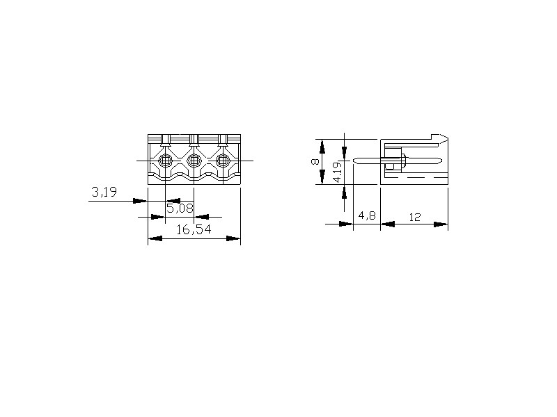Asansör mekanizmalı vida bağlantılı soketli PCB klemensi3 kutupMax. iletken kesiti: 2,5mm²-14 AWGPim aralığı: 5,08mmNominal gerilim: 250VNominal akım: 16A