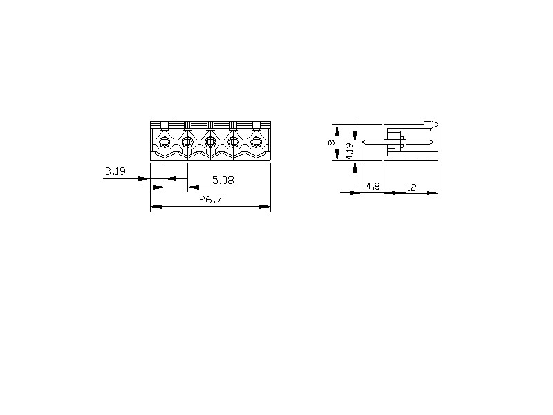 5,08mm Soketli Klemens Erkek 180° Kapalı – 5 Pim