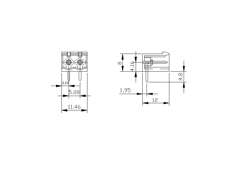 | SBDK 5,08-D/2 | 5,08mm Soketli Klemens Dişi – 2 Pim |