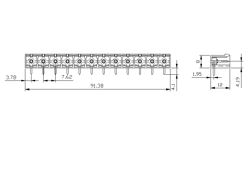 Asansör mekanizmalı vida bağlantılı soketli PCB klemensi12 kutupMax. iletken kesiti: 1,5mm²-16 AWGPim aralığı: 3,81mmNominal gerilim: 160VNominal akım: 8A