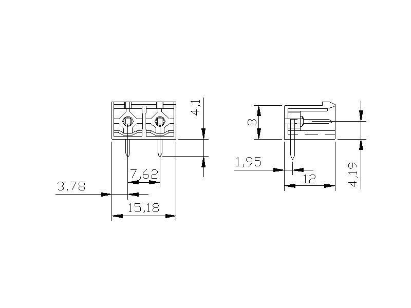 | SBDK 7,62-DD/2 | 7,62mm Soketli Klemens Dik Dişi – 2 Pim |